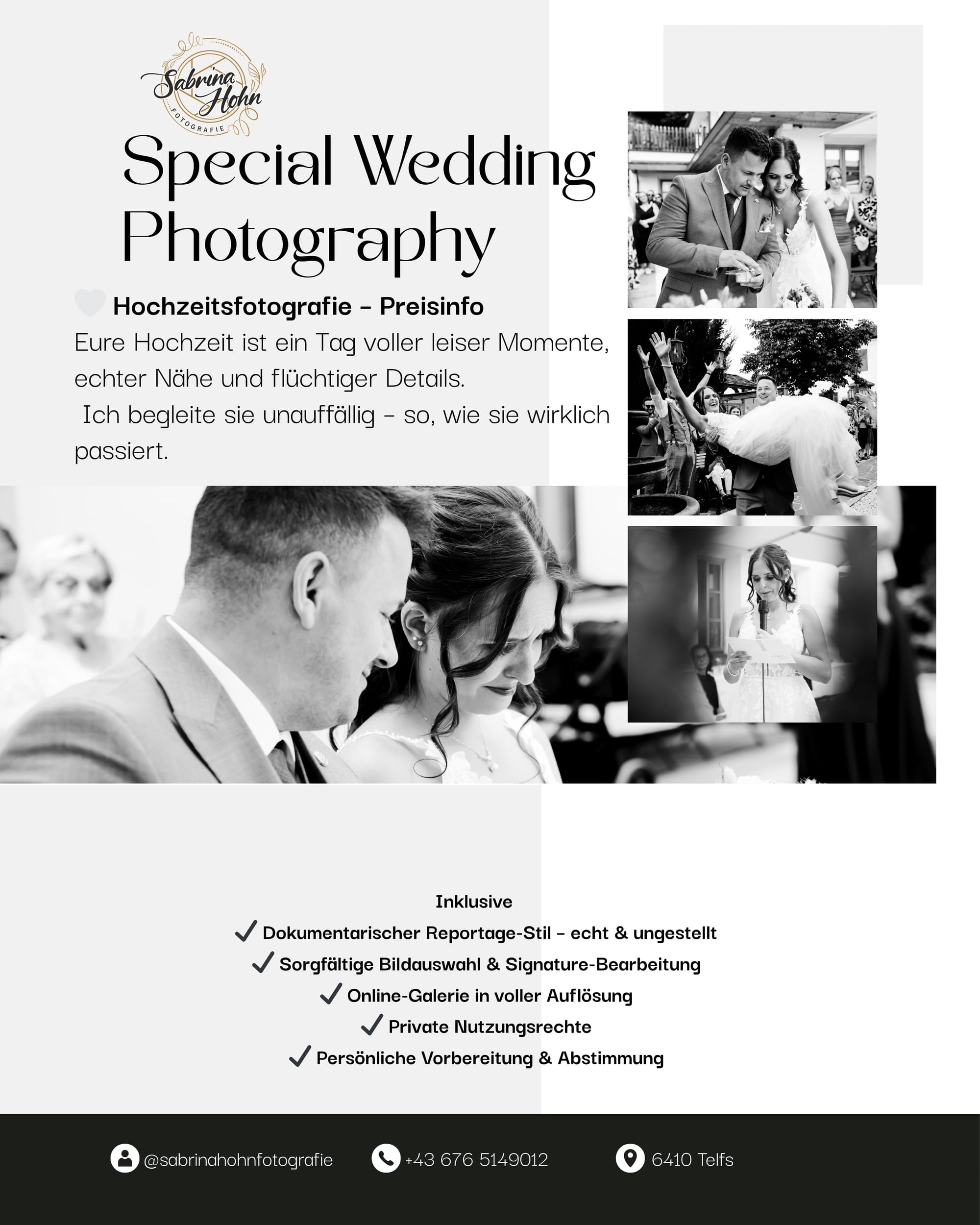 Ich begleite nur eine begrenzte Anzahl an Hochzeiten pro Jahr, damit ich jedem Paar meine volle Aufmerksamkeit schenken kann. Qualität, Zeit und ein feines Gespür für echte Momente stehen für mich an erster Stelle.